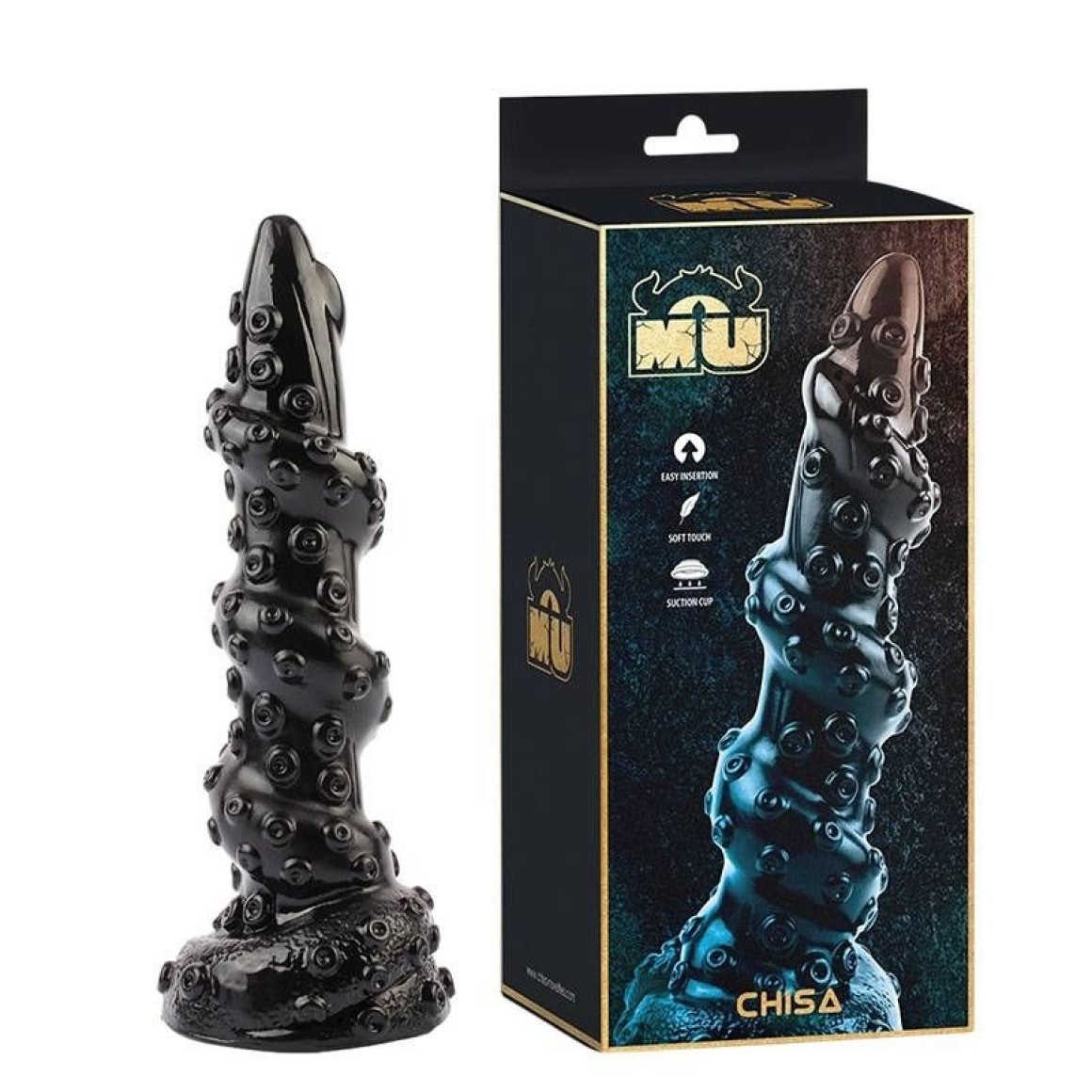 Plug anal com diâmetro escalonado, saliências aneladas e ventosa.