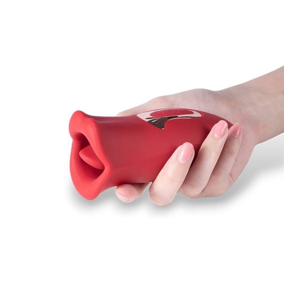 Vibrador recarregável que simula beijo francês formato boca com língua.
