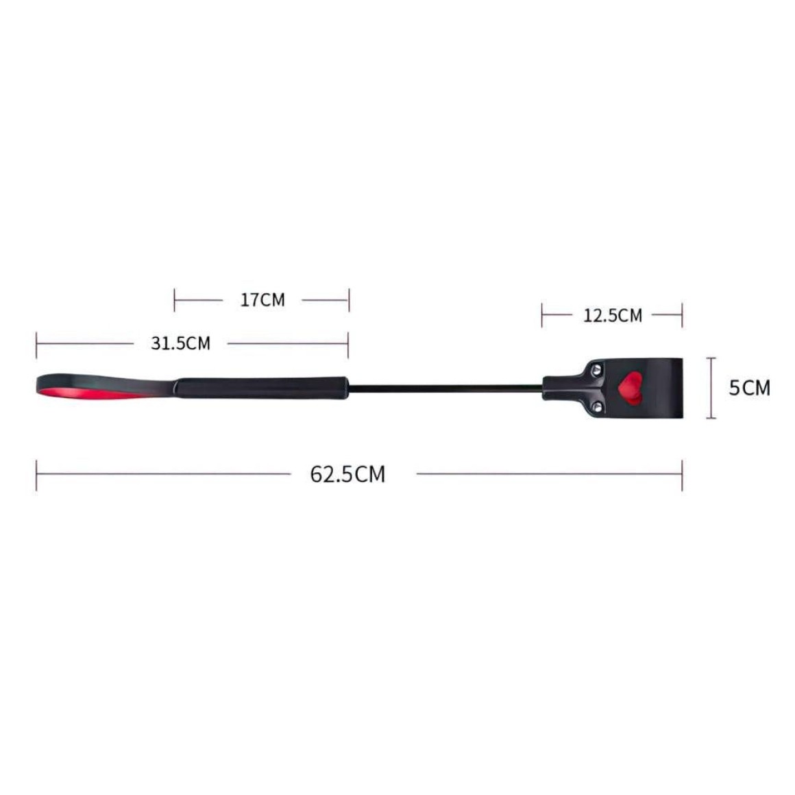Com 62,5 cm de comprimento e 5 cm de largura, a chibata oferece alcance, leveza e precisão durante o uso.