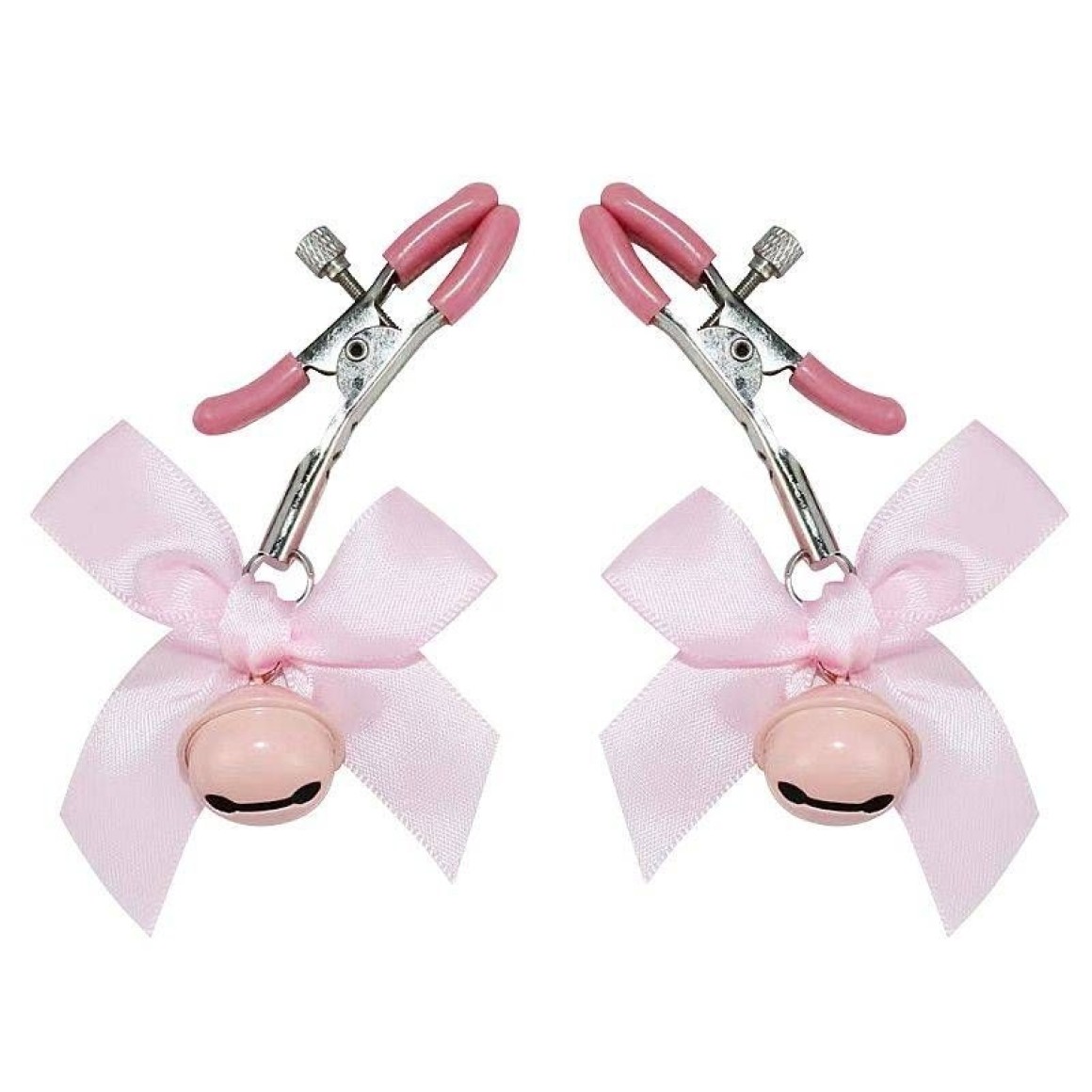 O prendedor de mamilos possui ajustes e guizo de metal.