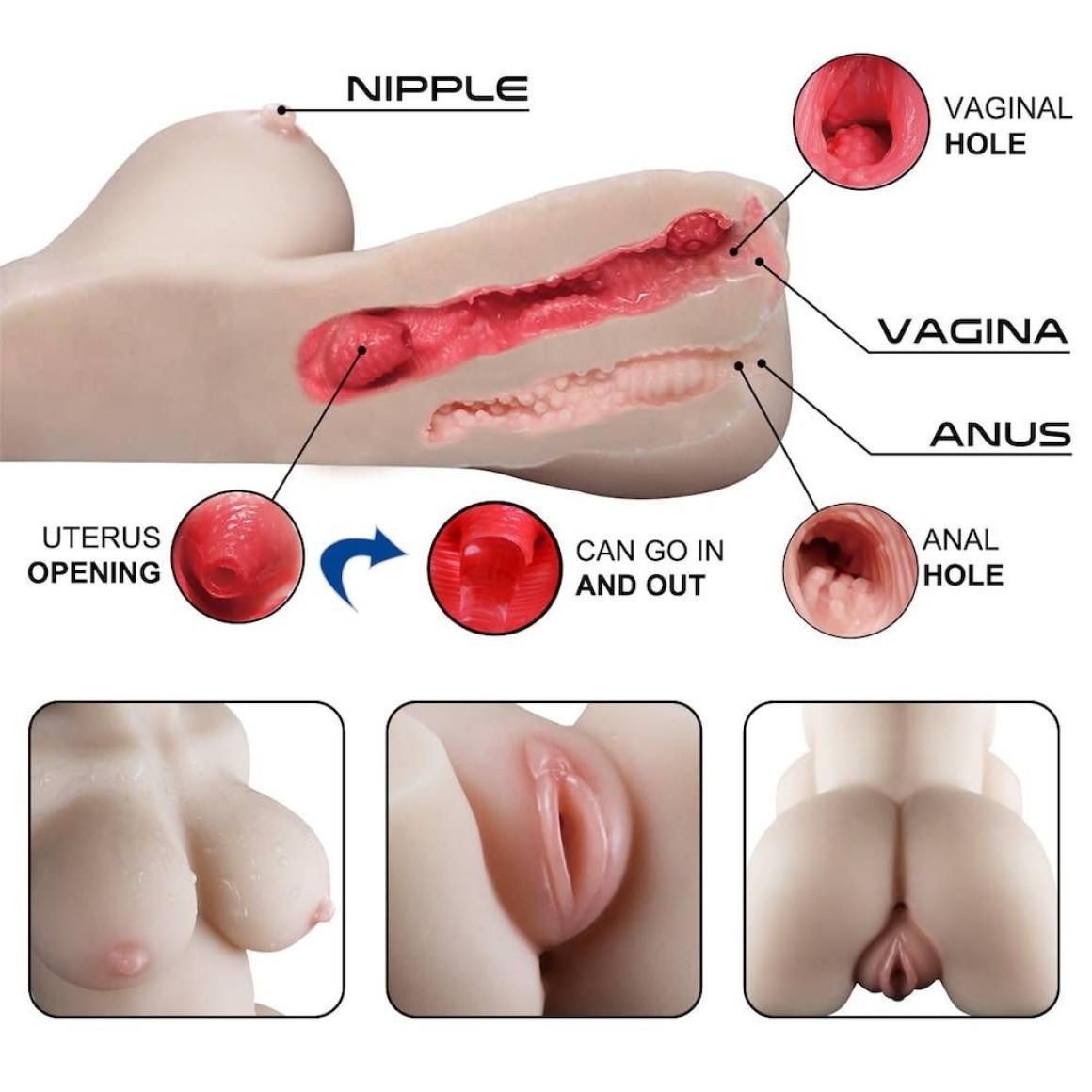 Este masturbador apresenta um design cuidadosamente esculpido, que reproduz fielmente as formas sedutoras de uma bunda e seios femininos.