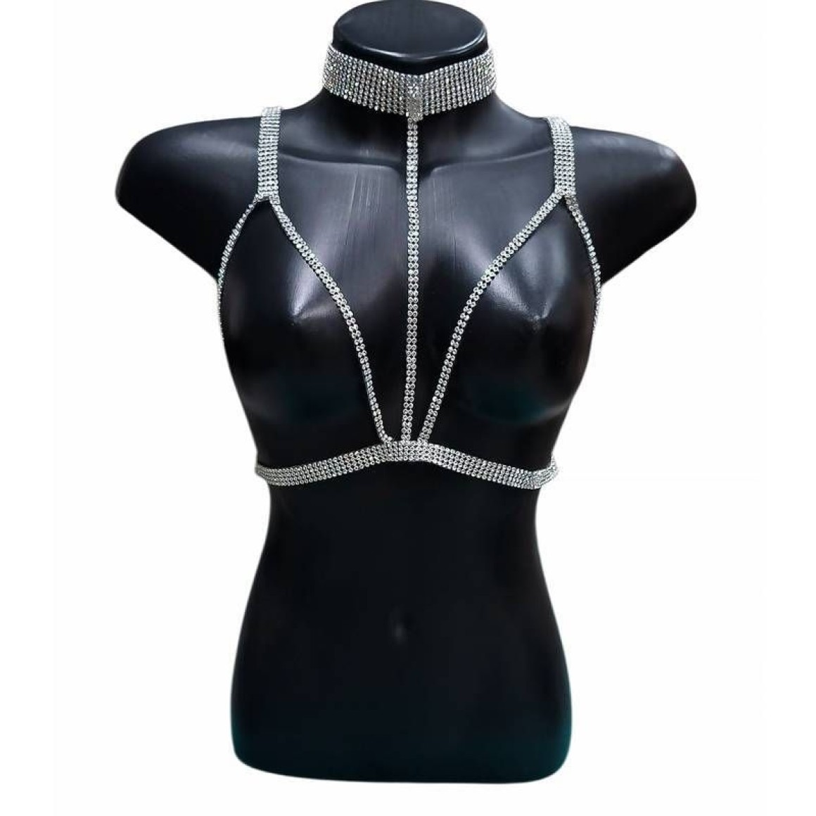 Top Sutiã Manta de Strass - Tiras Plasticas de Silicone - Bodychain