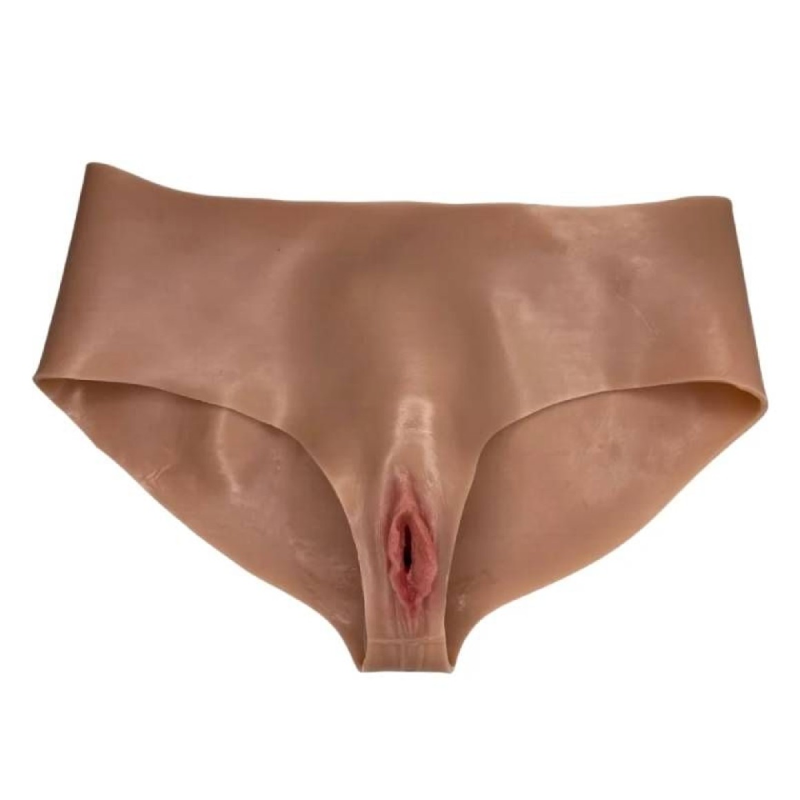 Vagina realística em formato de calcinha, feita em silicone macio e elástico. Possui toque suave e aparência natural, imitando com perfeição a textura da pele.