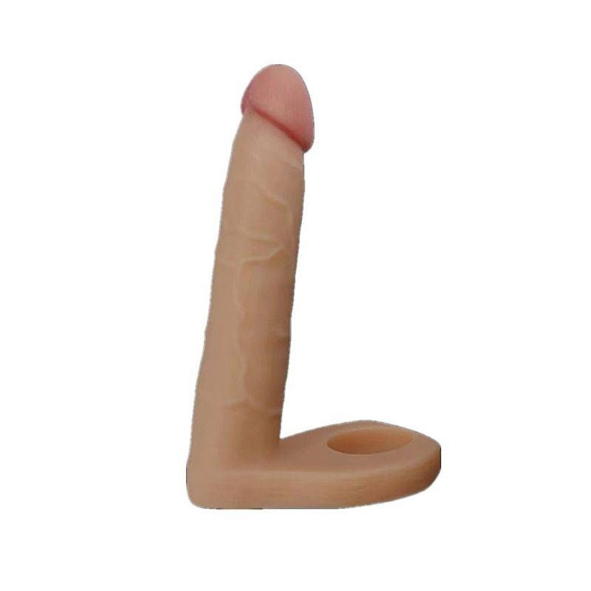 Anel companheiro que possui prótese em formato de pênis, e glande definida, textura estimuladora e seu anel é ajustável a qualquer tamanho de pênis.