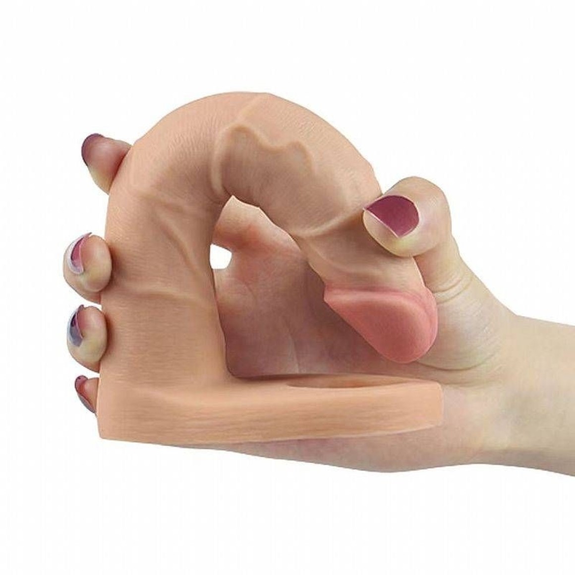 Anel companheiro que possui prótese em formato de pênis, e glande definida, textura estimuladora e seu anel é ajustável a qualquer tamanho de pênis.