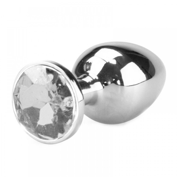 Plug anal de luxo em metal, com formato cônico, feito em alumínio fundido e polido a mão, possui em sua base uma pedra lapidada que lembra um diamante colorido.