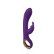 Vibrador recarregável ponto G com auto aquecimento, estimulador clitoriano com formato coelho e alça metalizada na extremidade. Possui 10 modos de vibração.
