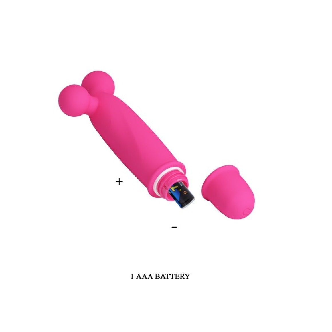 Mini vibrador em silicone com esferas massageadoras nas duas pontas, pode ser utilizado como estimulador externo ou para penetração, atingindo uma estimulação direto no ponto G.