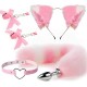 Kit fox composto por 1 tiara de pelúcia com guizo e laço de cetim + 1 plug anal com cauda de pelúcia + 1 par de grampos para seios em metal com presilhas ajustáveis com guizo e laço em cetim na ponta + coleira com coração vazado.