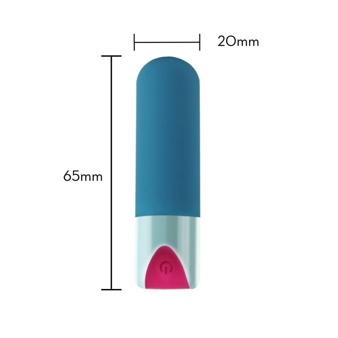 Cápsula vibratória em formato bala com ponta arredondada com toque aveludado.