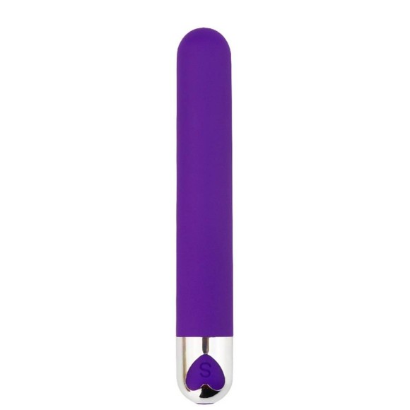 Cápsula vibratória personal com ponta arredondada e botão em formato de coração. Possui toque aveludado.