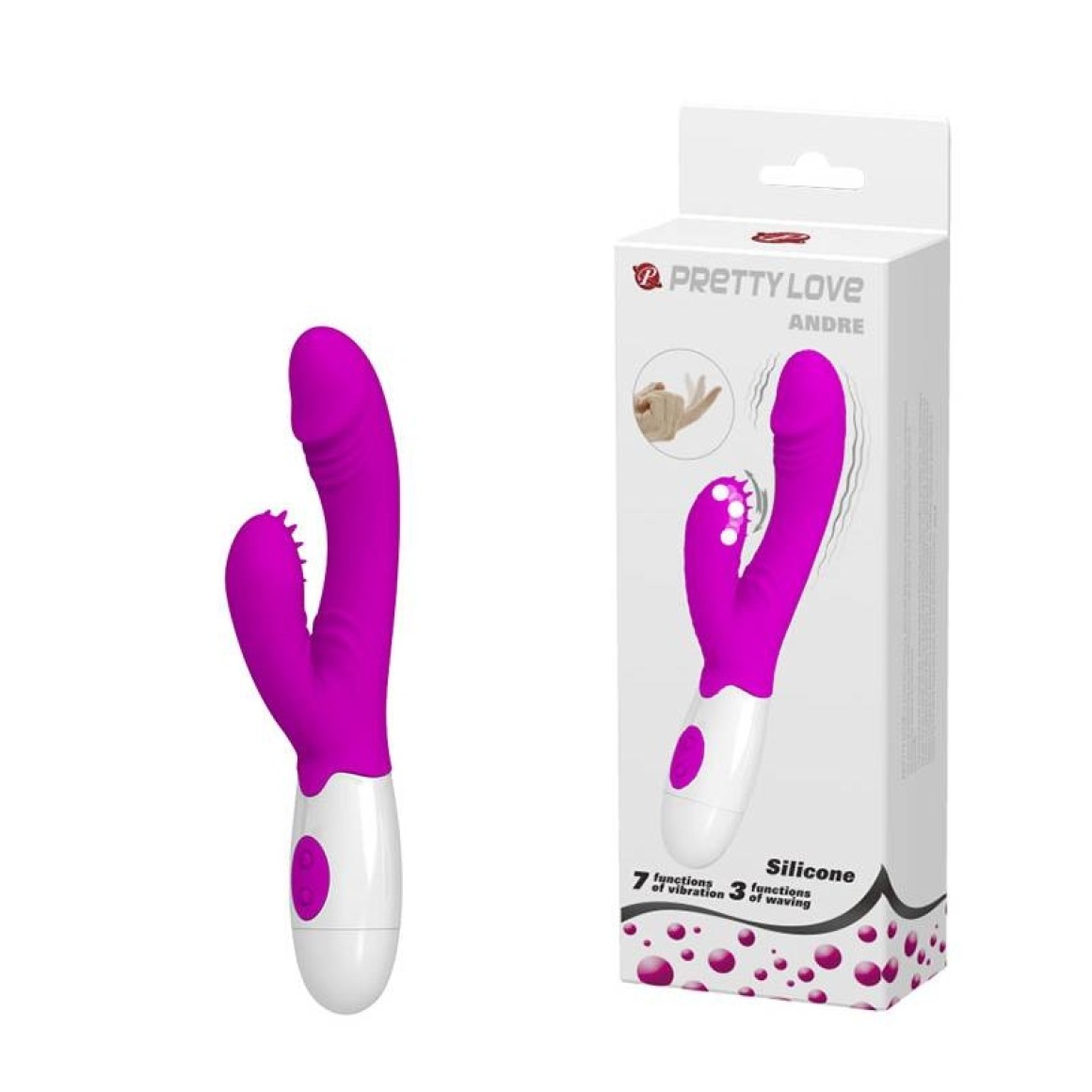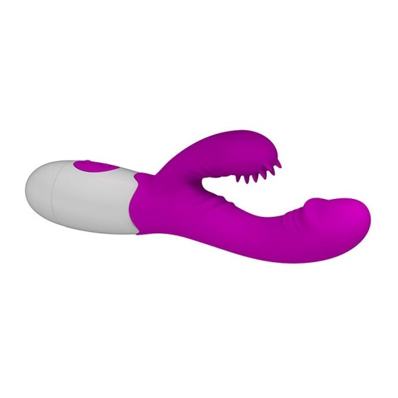 Vibrador com estimulador clitoriano em silicone, com saliências em formato de línguas. Possui 7 modos de vibração.