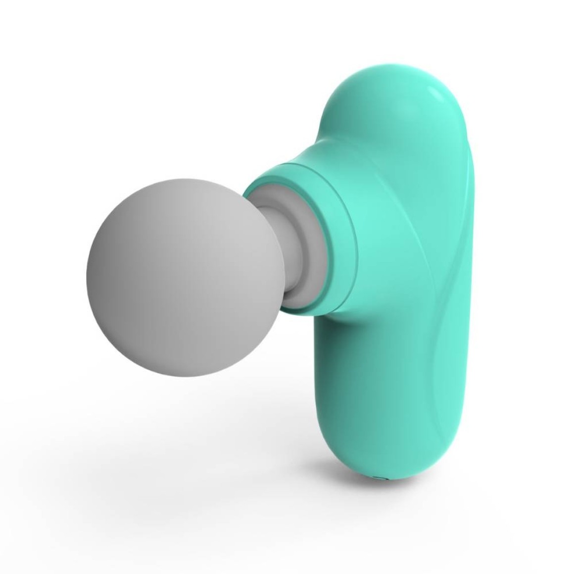 Mini massageador em formato de pistola revestido em silicone com toque aveludado.
