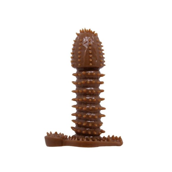 Capa peniana extensora com textura anelada e nódulos massageadores.