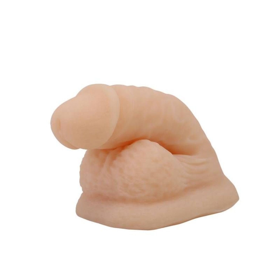 Prótese sem ereção para proporcionar volume, possui glande, veias e escroto.