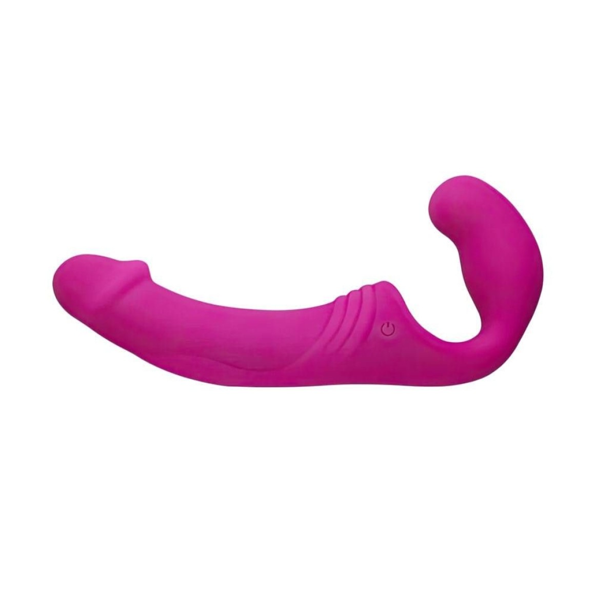 Penetrador strapless recarregável com plug vaginal, permite o uso sem cintas, controle wireless com função de intensidade de vibração.
