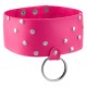 Coleira confeccionada com: montana, rebite, argola metal, botão pressão.