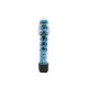 Vibrador personal com capa texturizada. Possui superfície lisa e um motor multivelocidade controlado a partir de um botão giratório em sua base.