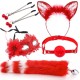 Kit fox composto por 1 tiara de pelúcia + 1 plug anal com cauda em pelúcia + 1 par de grampos para seios em metal com presilhas ajustáveis com guizo na ponta + coleira com coração vazado em metal + máscara de fantasia sensual com strass e flor.