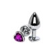 Plug anal formato coração em alumínio médio, possui em sua base uma pedra colorida lapidada como uma jóia.